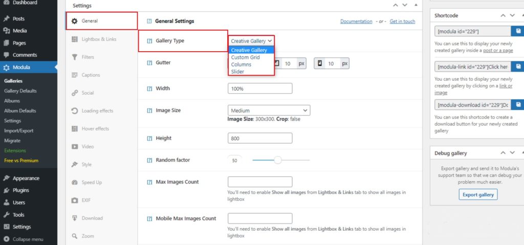 Let’s start with choosing our gallery type. For my example, I choose to go with creative gallery. You can choose from custom, slider, and masonry (columns) too.