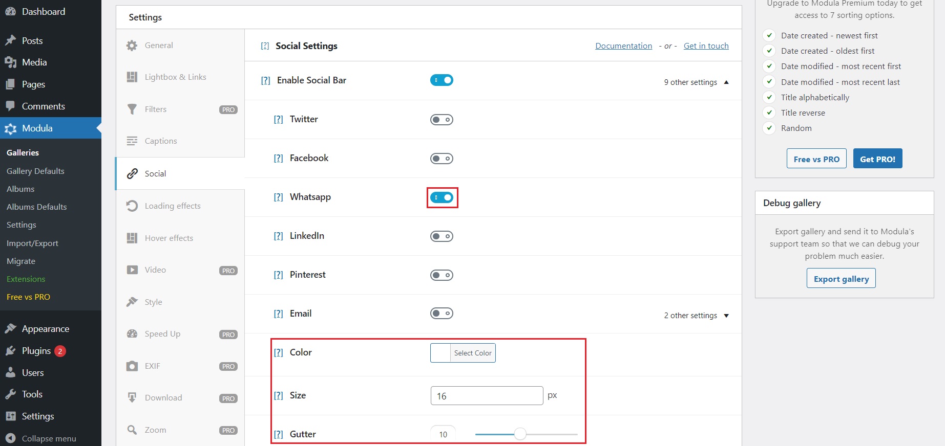Enabling WhatsApp sharing in Modula is straightforward as well.