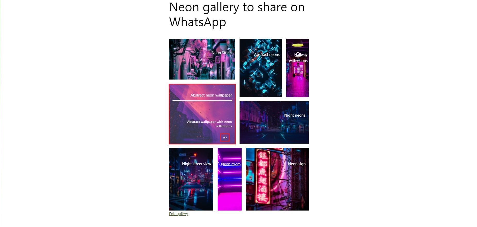 Here’s how your gallery will look on the front end. If you hover your mouse over the image, you will see the WhatsApp icon, and you can click on it.