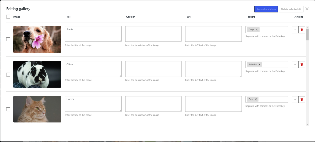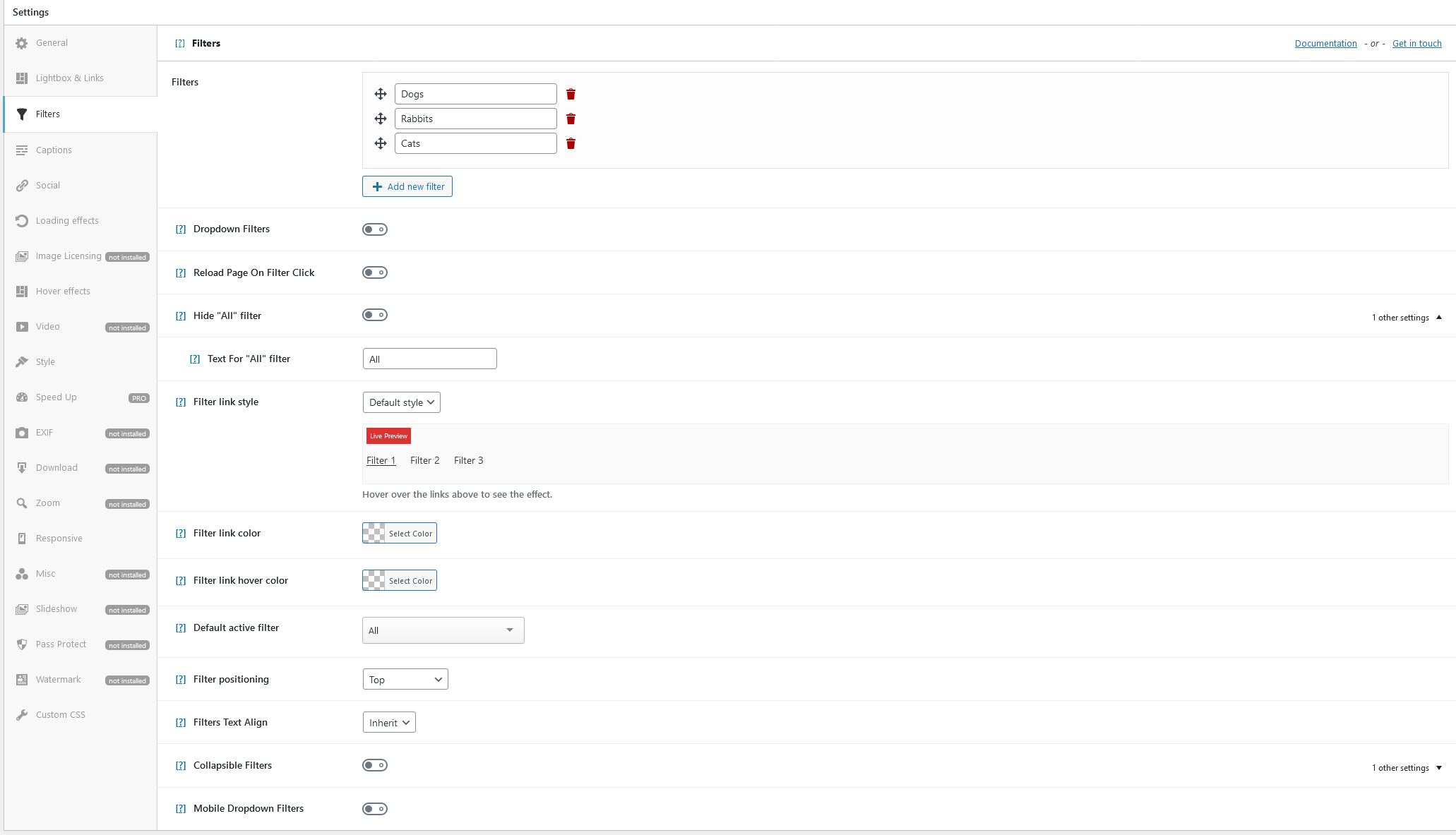 Your gallery can contain many images, so it will be easier for your visitors if you sort them using filters.