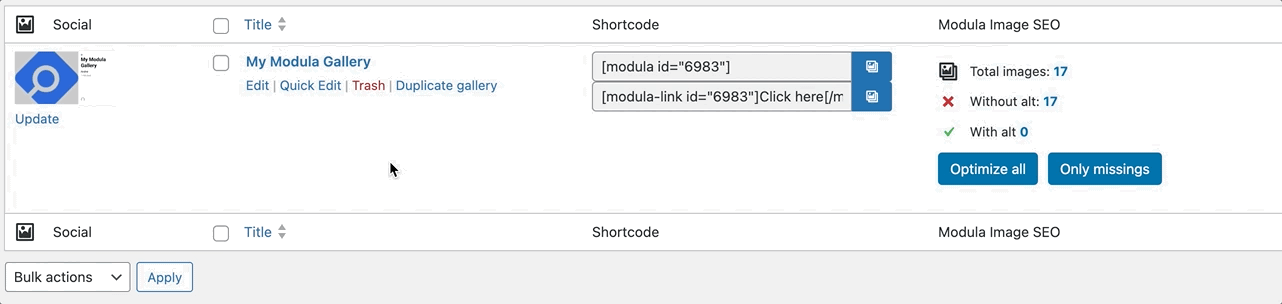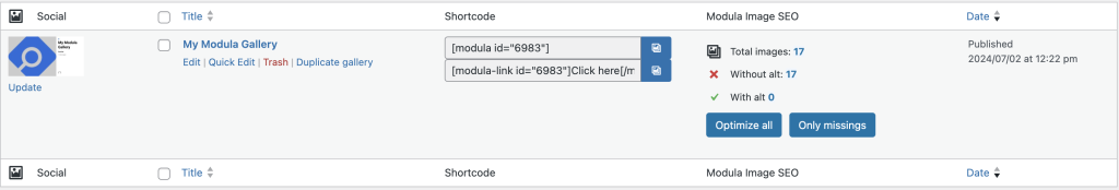 When using this integration, a new option will become available either in the general listing of galleries from WP Modula