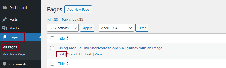 -> Navigate to the Page: Log in to your WordPress dashboard > Go to the page where you want to insert the image that triggers the lightbox.