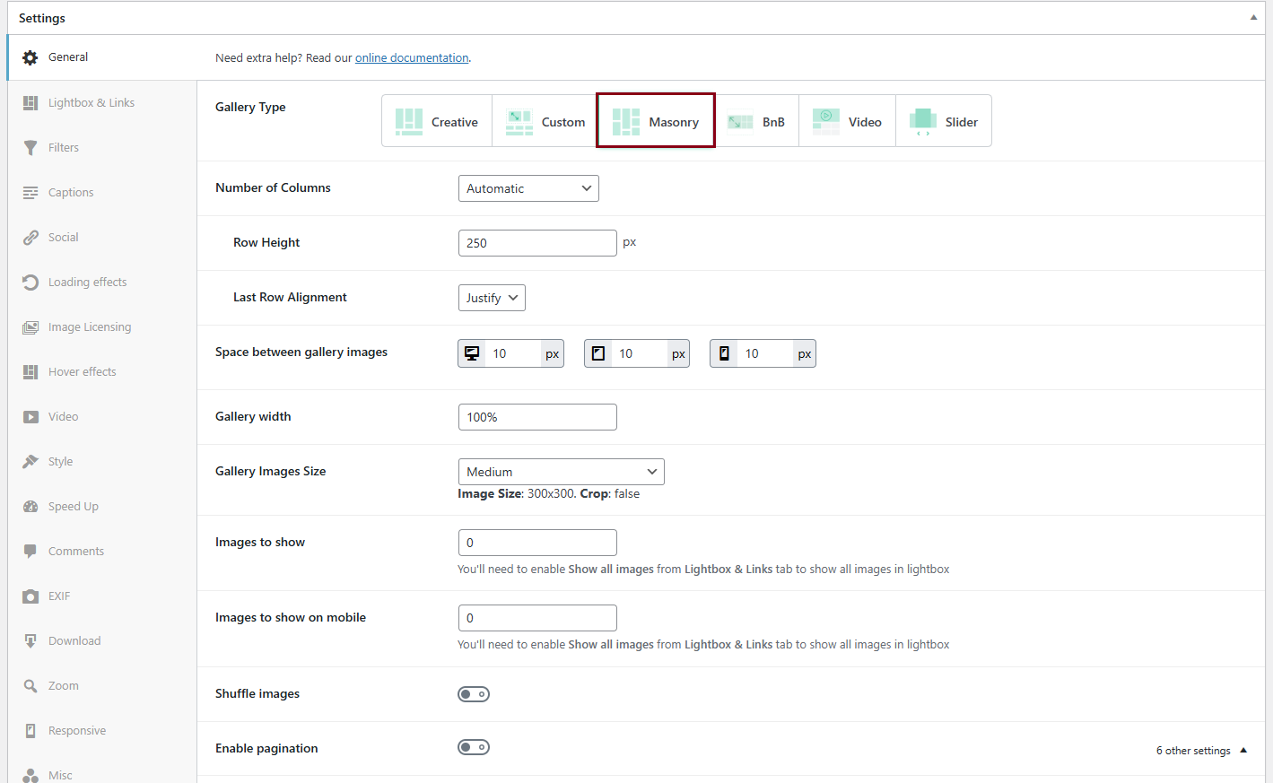 The end result is a surprisingly great-looking gallery. Turn up the random factor to 100 as well as toggle “shuffle images” to ON for a maximum creative effect. On every page refresh, you’ll get a different-looking gallery.