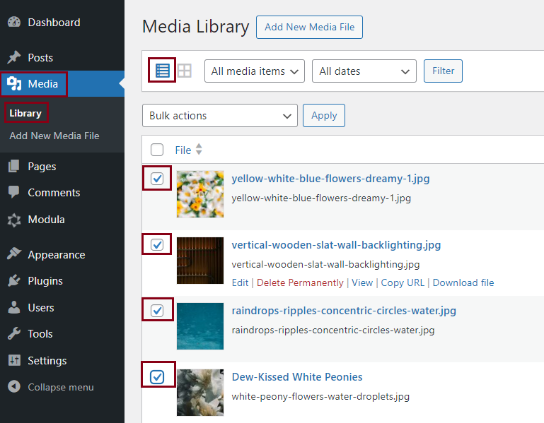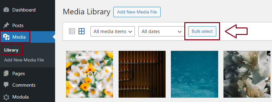 NOTE: Please note that only images will be added to the galleries. If you have other file types in your Media Library, such as PDFs, zip files, etc., they will be skipped and not taken into consideration when adding images to Modula galleries.
