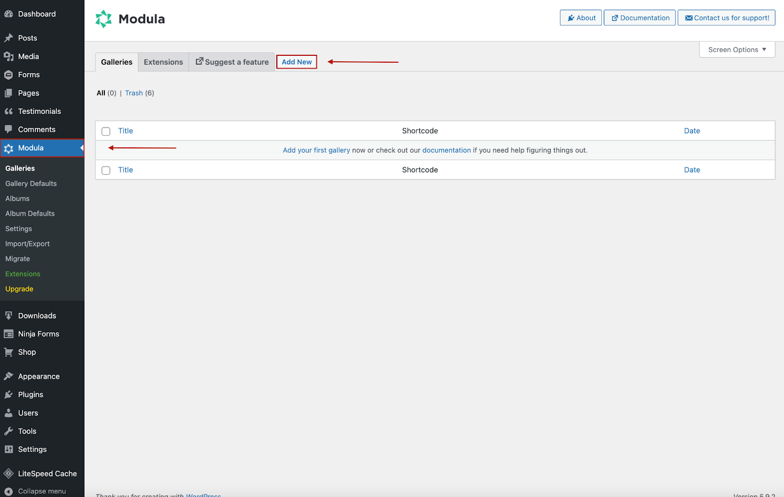 To get started, head to your WordPress Dashboard >Modula > Add New and it will pop up a new box.