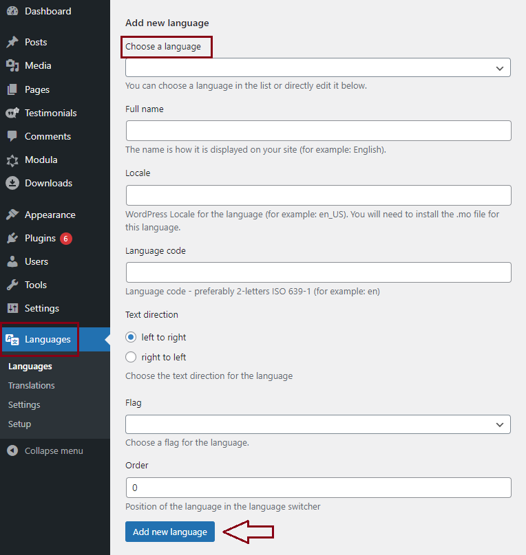 Install and activate the Polylang plugin