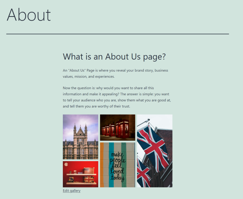 Here is how the gallery on my English page looks.
