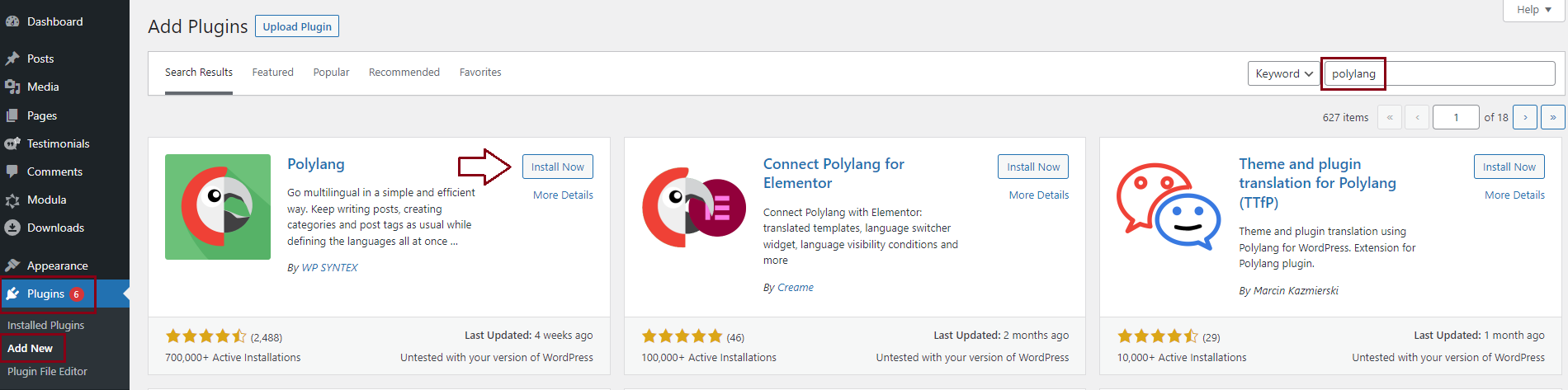 You can do this by going to your WordPress dashboard > Plugins > Add new > Search for Polylang > Install and Activate it.