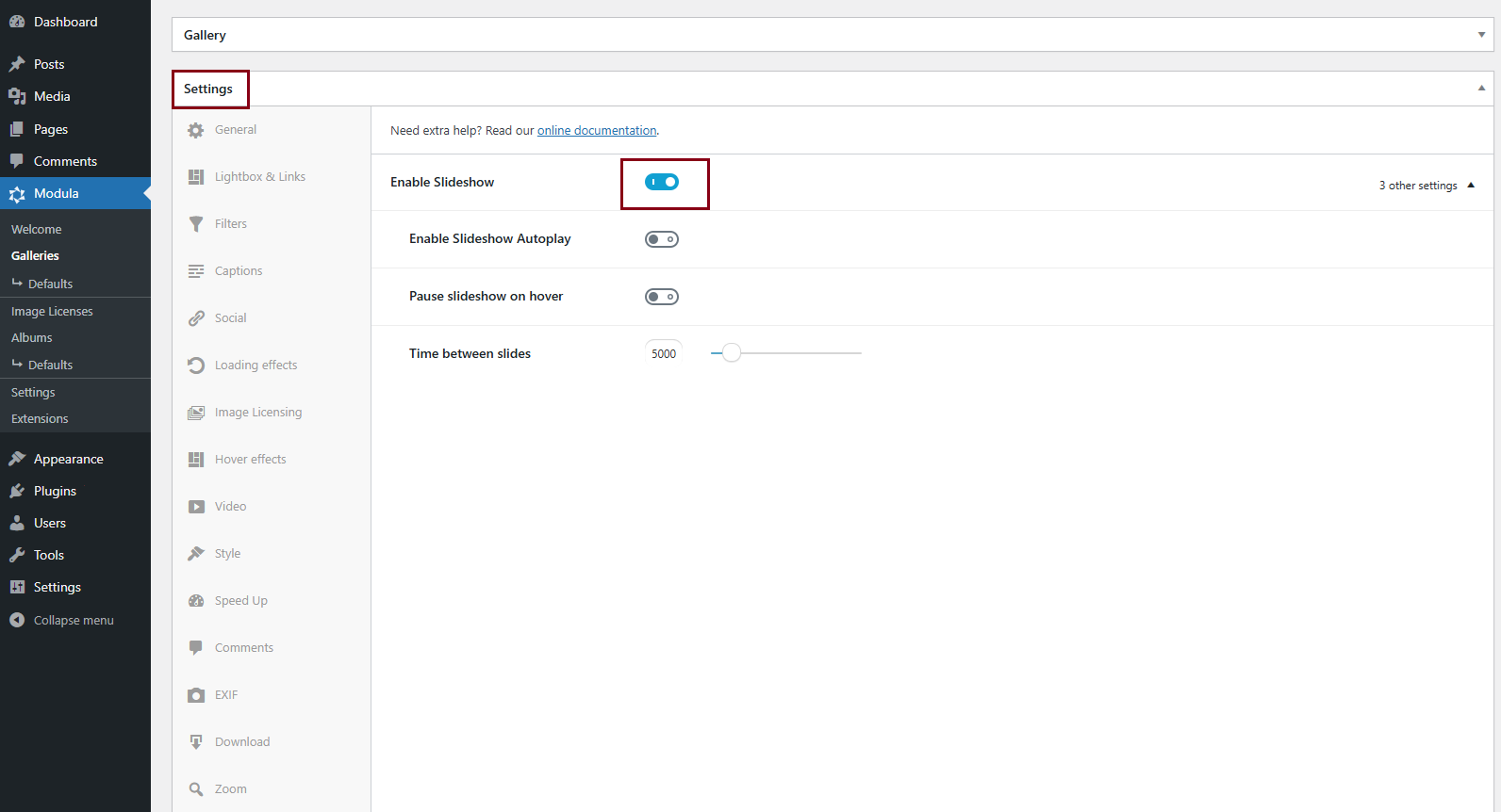 - Modula Lightbox Slideshow Addon: Install and enable the Modula Lightbox Slideshow addon on your WordPress site.
