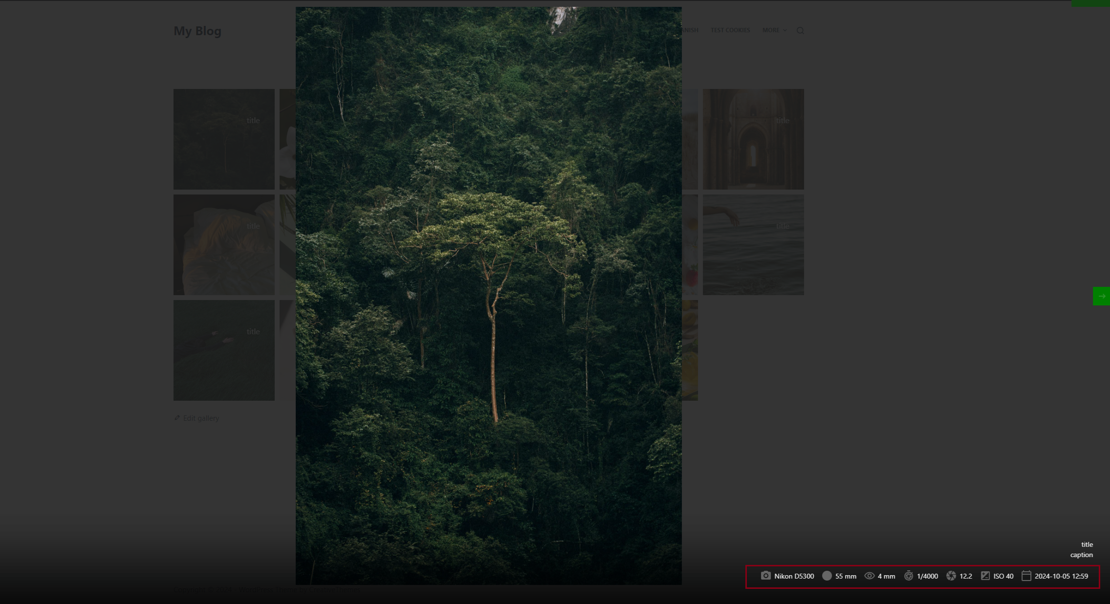 Example with the EXIF data displayed in the lightbox.