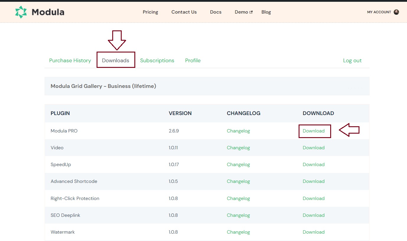 After your payment is completed you will receive an email containing all the information and the download URLs for Modula and its extensions. Make sure to check Spam as well!