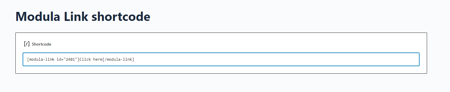 For example: [modula-link id="GALLERY_ID_HERE"]<img src="IMAGE_URL_HERE">[/modula-link]