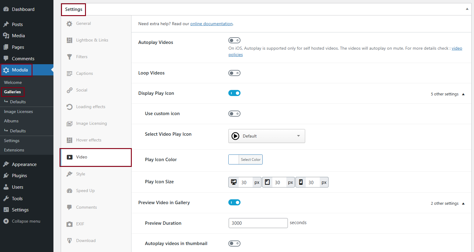 By following this guide, you can effectively configure the Modula Video Settings extension to customize the behavior and appearance of videos within your galleries.