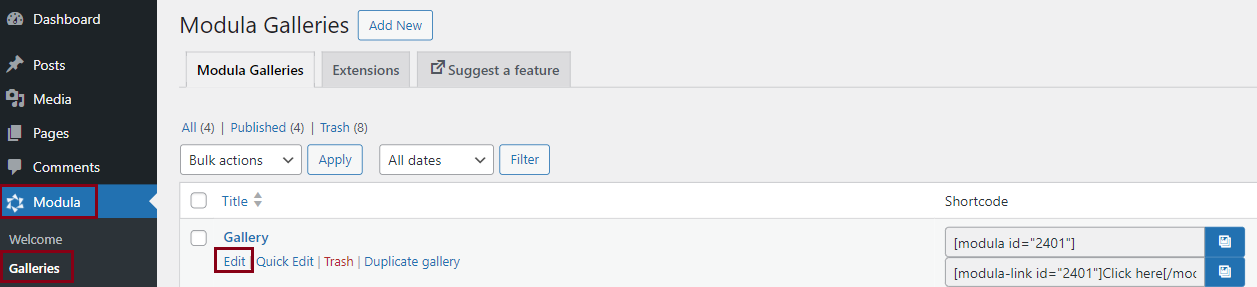 Go to your WordPress dashboard > Modula > Galleries > Edit your gallery.