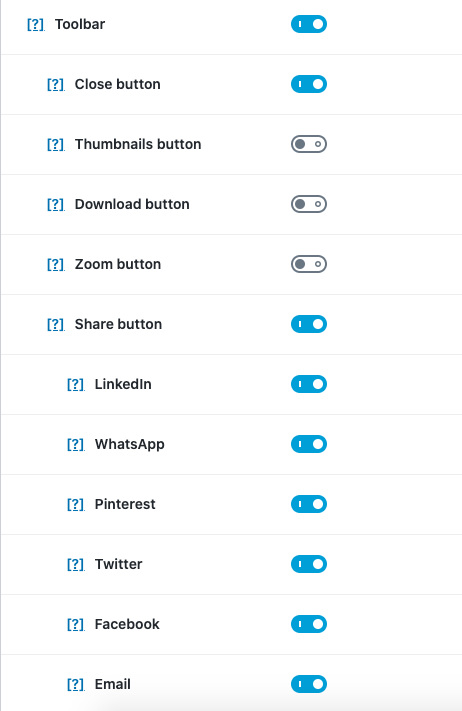 In the screenshot below, toggling the “Share button” to OFF, will subsequently, hide all of its siblings from view. We shouldn’t be cluttering your screen with disabled options anyway, right? (and I really hope our competiton isn’t doing this either – best practices, and all).