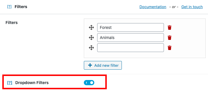 1. Vertical filters for custom grid display;