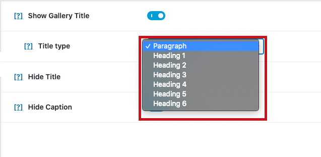 ✅ Gallery title and title type setting