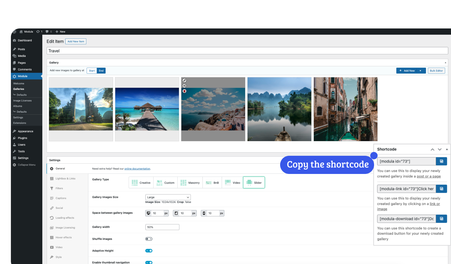 With Modula Slider, you can build a great-looking image slider in just a few clicks. Add your images, pick your style, and it’s ready to go. No stress, no coding — just easy, eye-catching sliders that work on any screen.