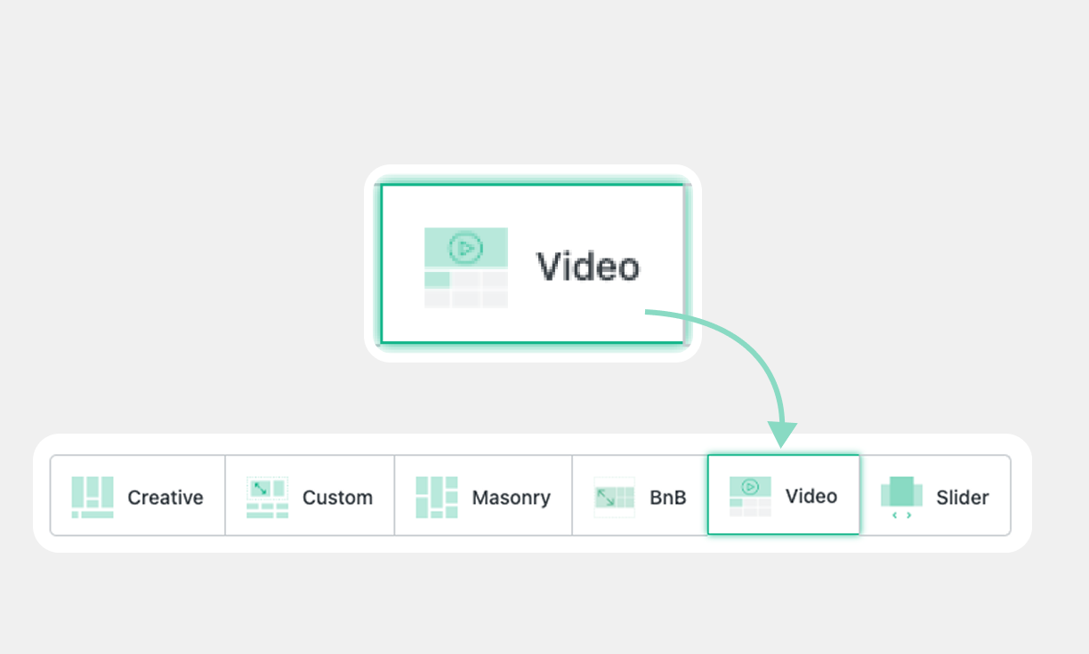 Enables a new gallery type: Video Gallery. This will create a layout where the main video is shown larger in the center, while the rest of the videos are shown as thumbnails on the side.