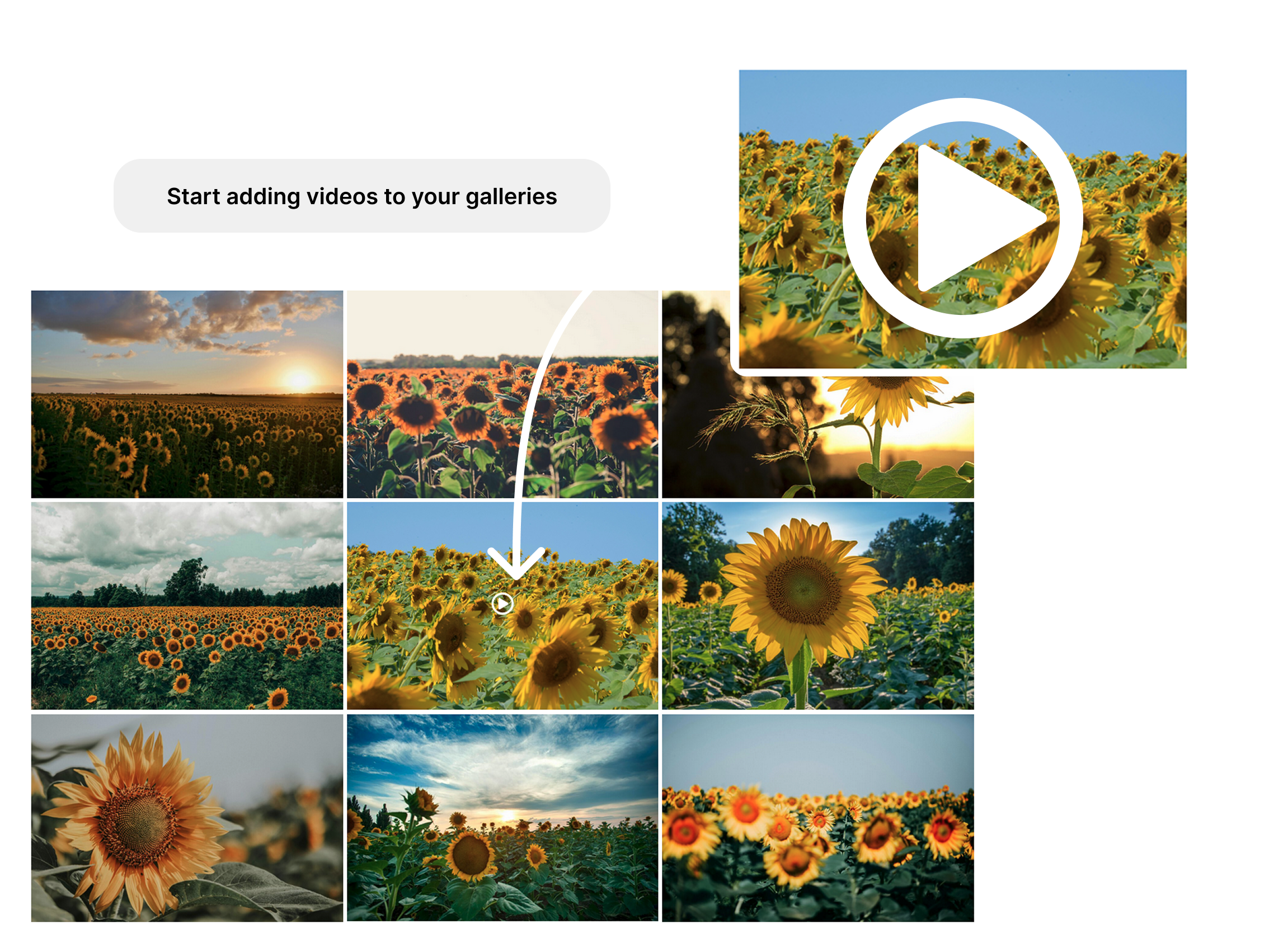 Add the power of video to your galleries. Create vibrant, multimedia showcases that keep visitors engaged from the first play.