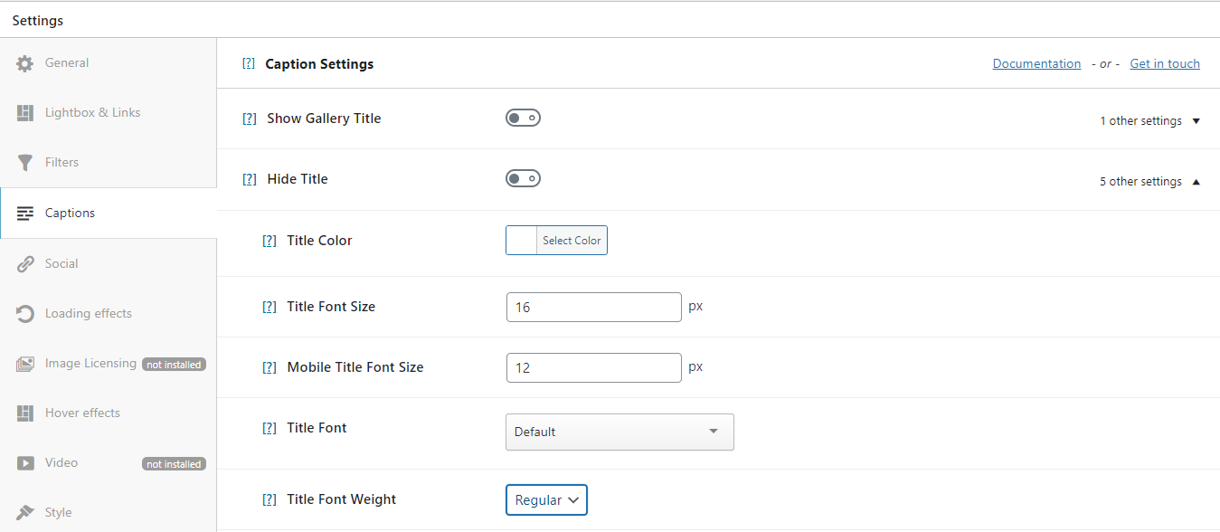 Modula allows you to hide or show the image title and caption. Moreover, you can choose the colors and font of your image’s title.