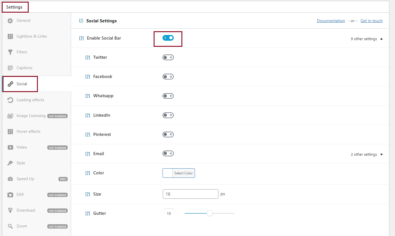 Next, I’ll enable social icons to allow my visitors to share these images on various social media networks.