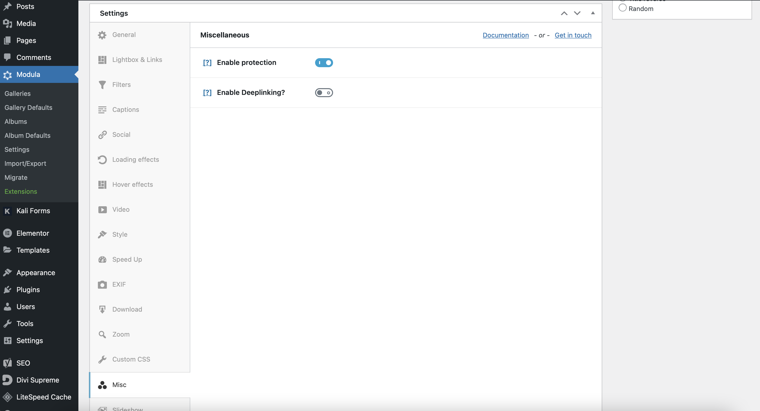 Once you’ve added your images, scroll down, and in the Settings section, look for Misc. Next, tick the Enable protection box to disable right-click and Alt/Option+Click functionality for downloading images.