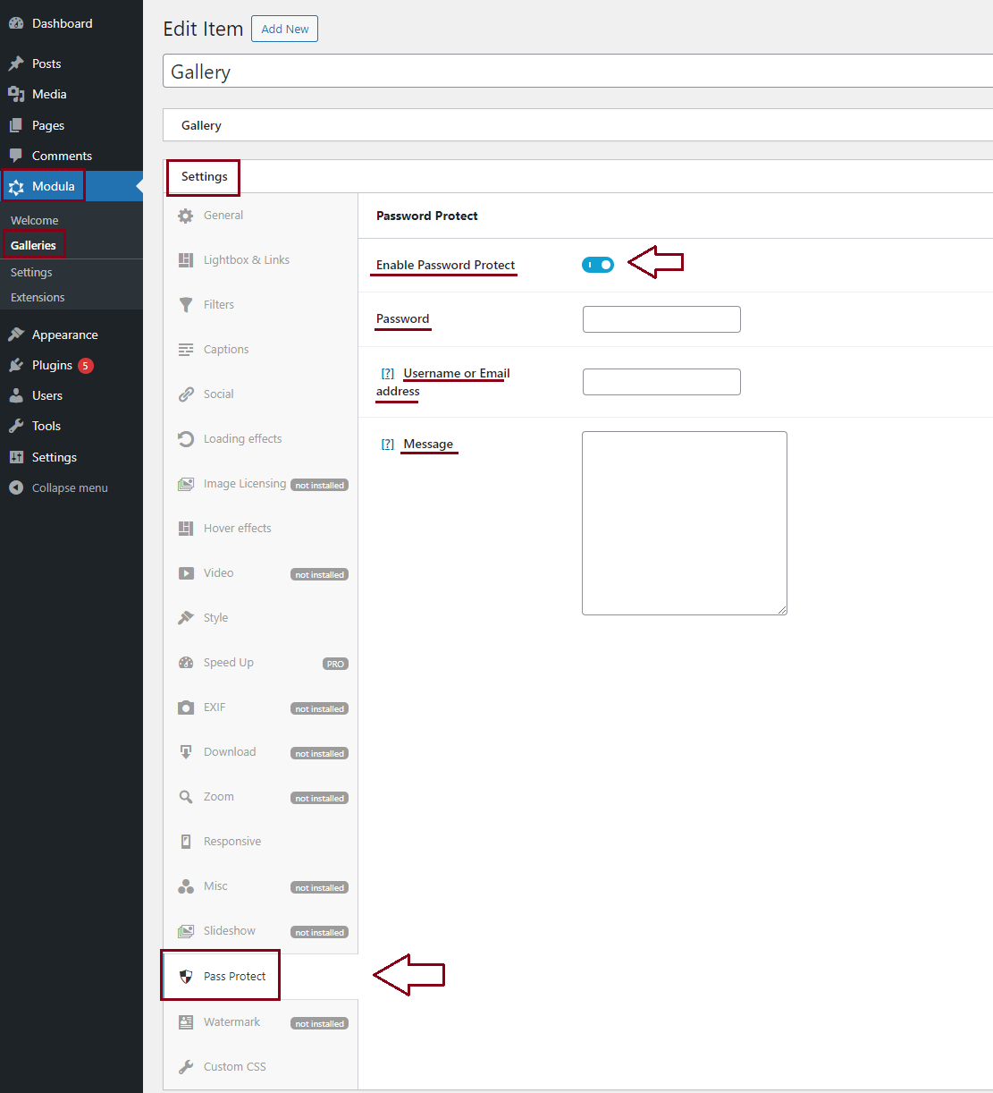 How can you do that? In the Settings section, go to Pass Protect, tick Enable Password Protect, add a password, the username or email address of people who are allowed to view your media files, and a message informing your website’s visitors that a password is required.