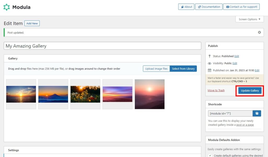 Once you are happy with your changes, hit Publish or Update gallery. After that, it’s time to display your gallery.
