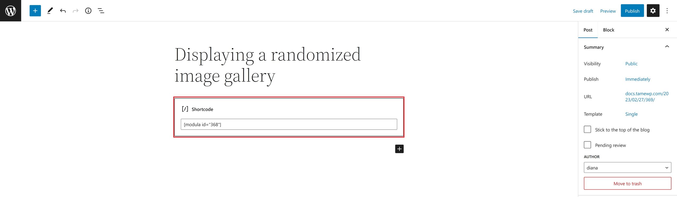 You can also click on the “+” and search for the Modula block, insert it into the post, then select the gallery you want to display from the drop-down menu. It’s all about making your life easier and your website cooler.