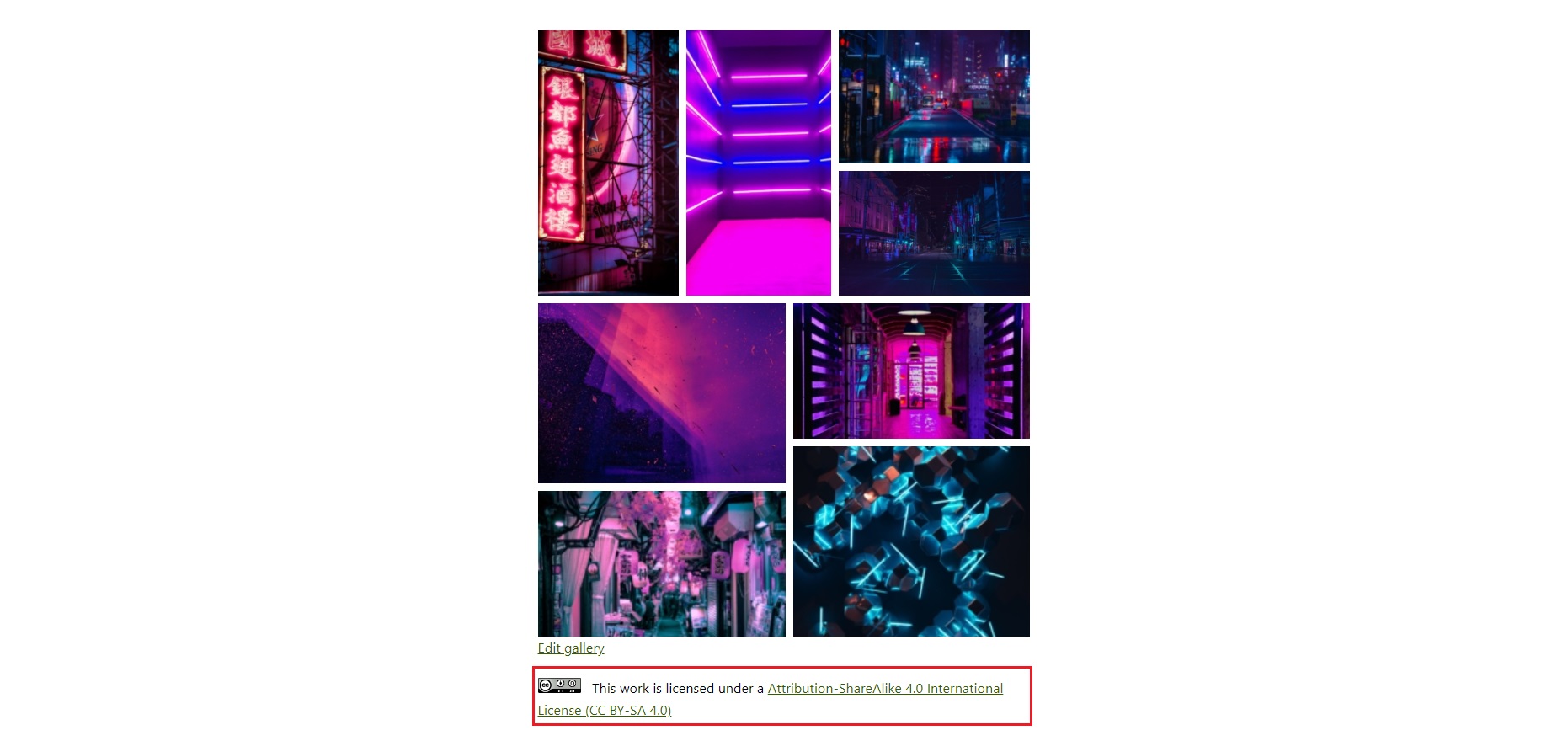 - the license you chose above will be displayed under all of your galleries. This will be visible to all of your website visitors, so they know under what license the pictures in the gallery are and whether or not they are allowed to use them too, under what conditions, etc.