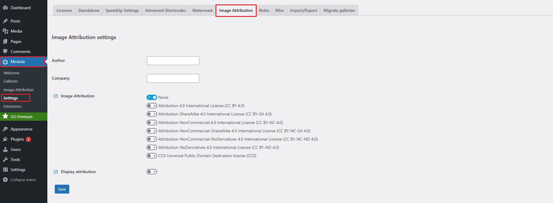 Modula Lite now allows you to set attribution information on a global level, meaning that all images will fall under the same type of license and will have the same author(s). In the near future, the Pro version will introduce the ability to create multiple licenses and use different ones for each gallery, if necessary.