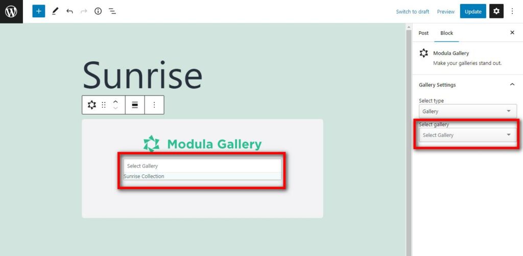 Once done, all you have to do is select the gallery of your choosing, as below: