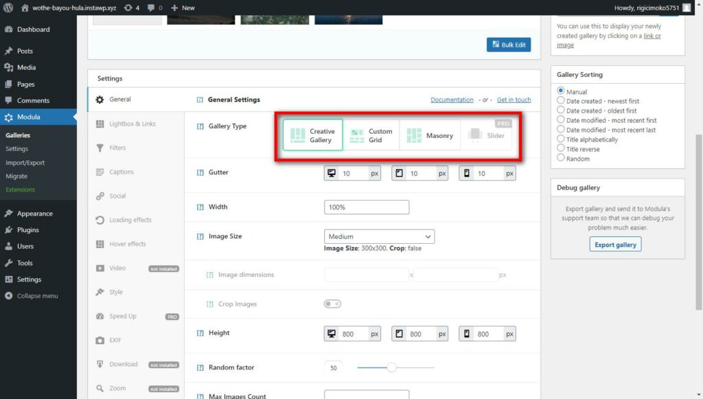 First, let’s choose a gallery type. You have four options: Creative, Custom, Masonry or Slider.