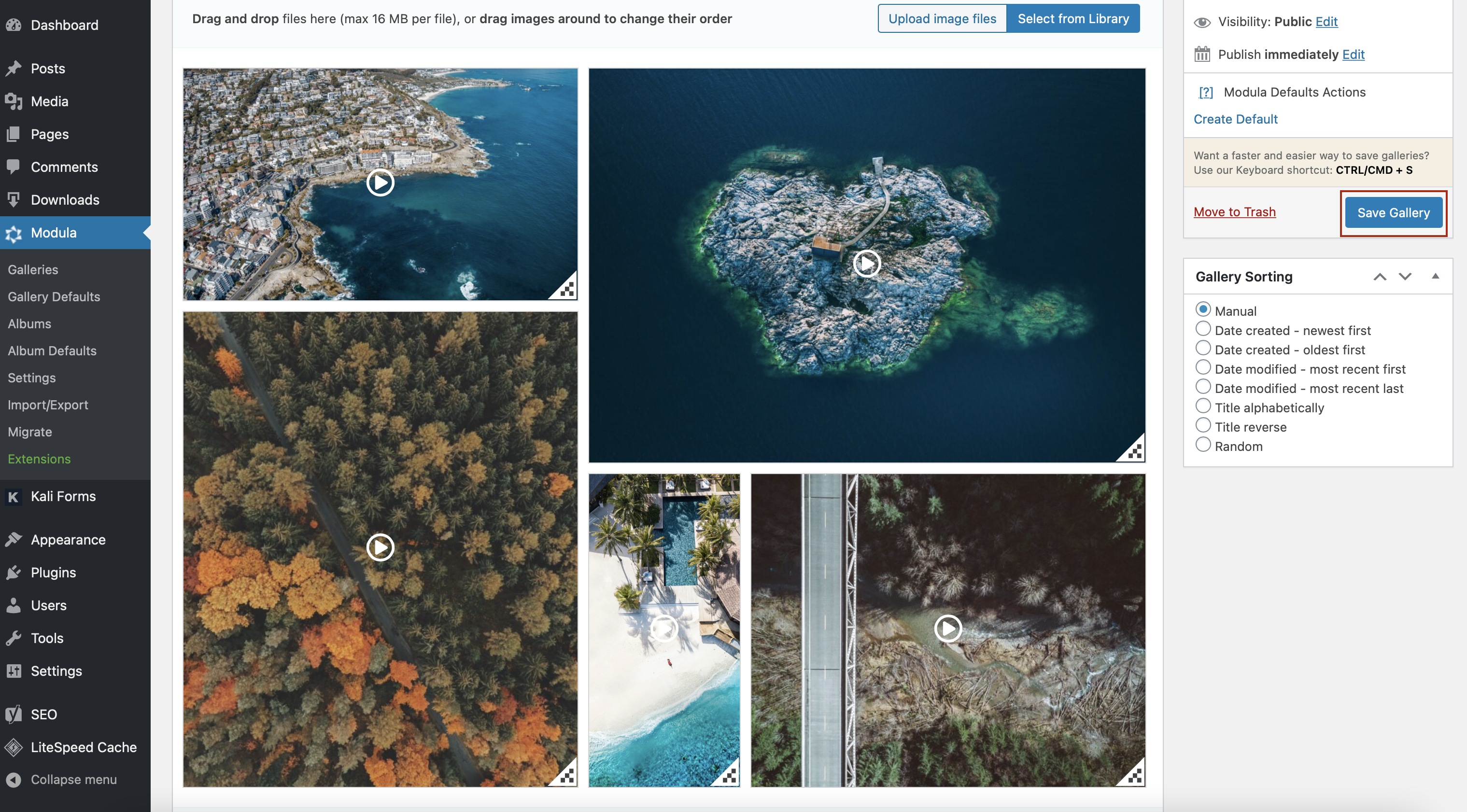 One of the best things about Modula is that it enables you to upload self-hosting videos or use them from a source like Vimeo, YouTube, etc., helping you to create fantastic video galleries.