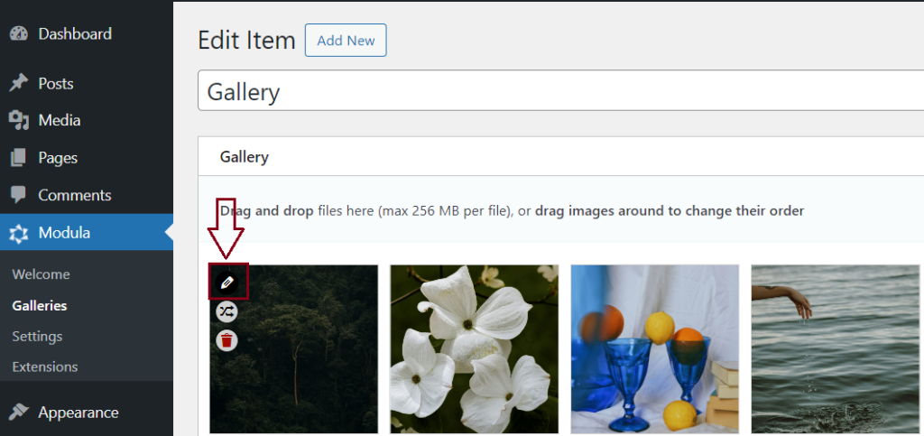From now on, when you want to create a gallery using this WordPress gallery plugin, go to Modula icon and click Add New.